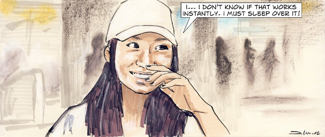 For some reason, I wasn't happy with this 12-picture story. I thought the drawings weren't good enough. Maybe I was once again in that mood 'I can't draw a thing', however silly that may sound. But my brother kept insisting and convincing me the character's faces and their expressions are perfect in the context so I made this update after all. I think he was right, as usual :)